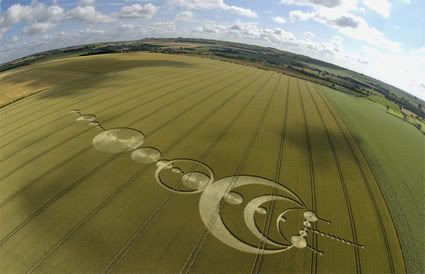 Bagaimana dengan adanya crop circle? Banyak yang telah melaporkan adanya bentukan crop circle di ladang pertanian gandum-gandum sekitar amerika yang membentuk motif-motif yang aneh dalam ukuran yang bisa dibilang cukup besar, apalagi dengan keterangan adanya kandungan medan elektromagnit di sekitar crop circle trersebut. Tetapi sejumlah orang mengaku telah merekayasa bentukan tersebut dengan menggunakan tali dan tongkat yang diputar seperti jangka sampai terbentuk pola-pola tersebut, dan tentu saja bisa dikatan, itu adalah proyek yang cukup besar, mereka mengaku crop circle adalah bagian dari seni yang dituangkan dengan media ladang gandum sebagai kanvasnya . Tapi apa mungkin hal itu bisa dilakukan hanya dalam jangka waktu semalam? (lihat motifnya begitu indah, begitu sempurna)